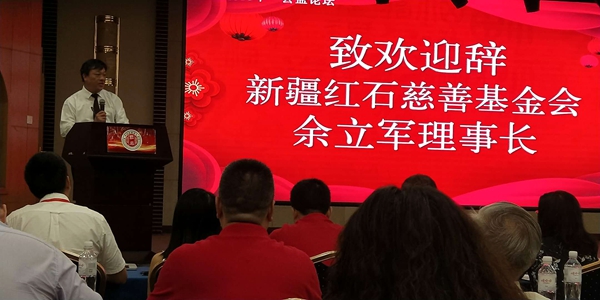 新疆红石慈善基金会理事长余立军致欢迎词。